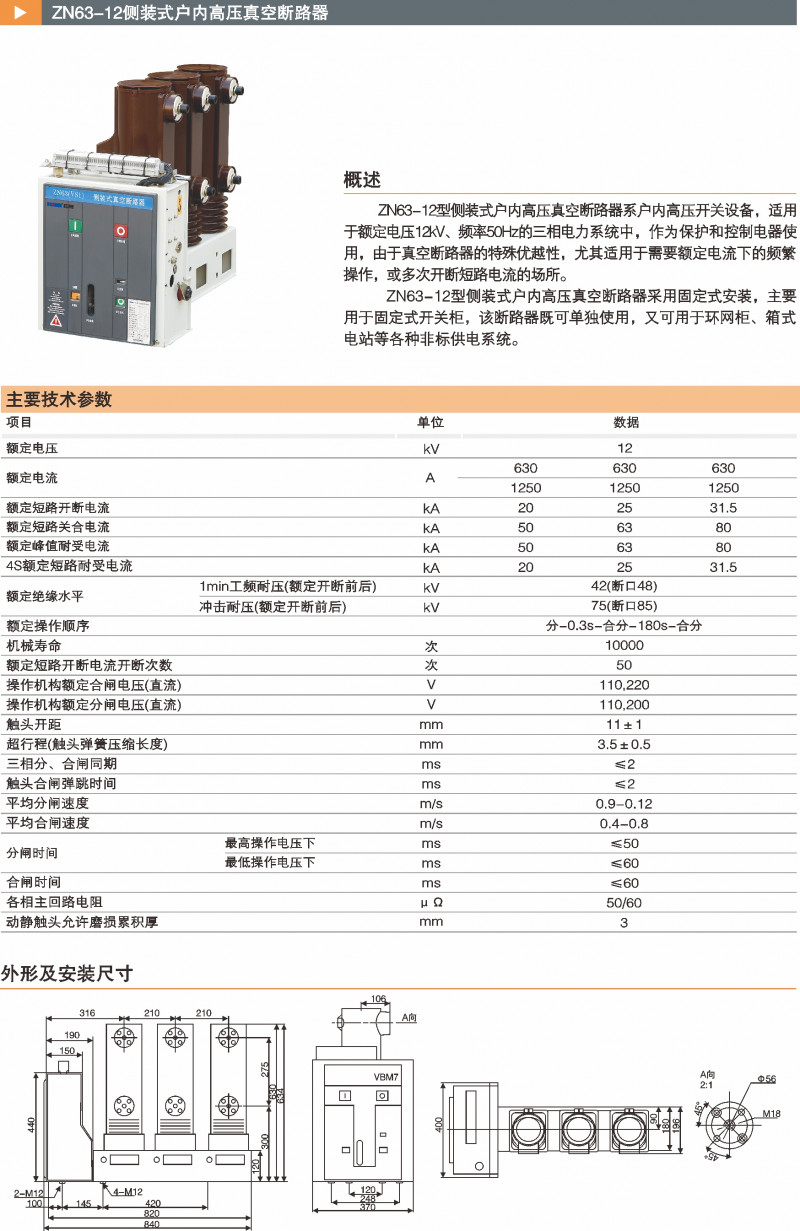 ZN63-12²àװʽ»§ÄÚ¸ßÑ¹Õæ¿Õ¶Ï·Æ÷